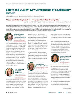 Safety and quality are key components of a laboratory system. While these areas are often managed separately, there is a benefit to bringing them together. When safety and quality work in tandem, it can lead to smoother operations, stronger communication and a laboratory culture where staff feel supported. Today’ s laboratory professionals are finding practical ways to merge safety and quality in their daily work. The following professionals show what is possible when safety and quality are no longer siloed. Their efforts serve as inspiration for others looking to create a more connected and impactful laboratory environment. g