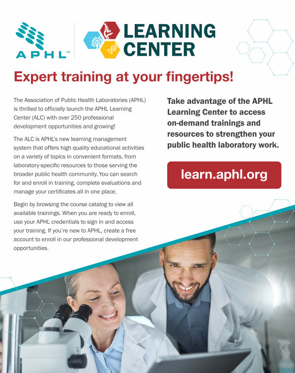 The Association of Public Health Laboratories( APHL) is thrilled to officially launch the APHL Learning Center( ALC) with over 250 professional development opportunities and growing!