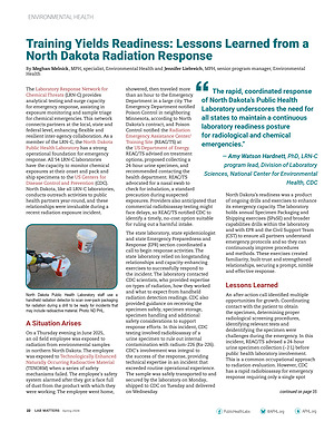 The rapid, coordinated response of North Dakota’ s Public Health Laboratory underscores the need for all states to maintain a continuous laboratory readiness posture for radiological and chemical emergencies.”