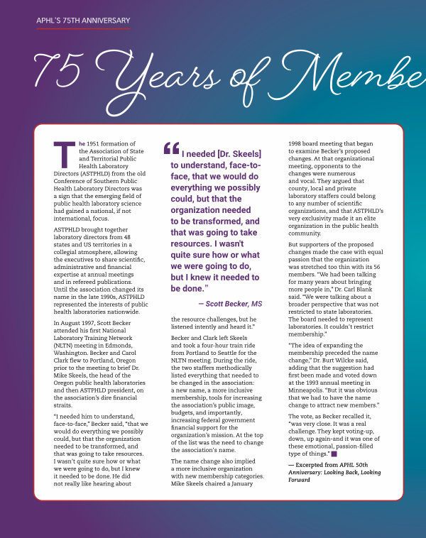— Excerpted from APHL 50th Anniversary: Looking Back, Looking Forward