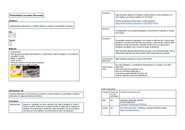 Compito 1 Ogni studente delinea l ' immagine di Monnalisa in modo semplice con una matita in un tempo massimo di 10 minuti .