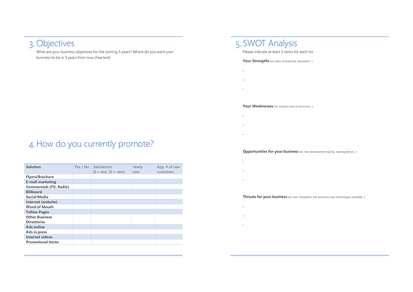 Solution Flyers/Brochure E-mail marketing Commercials (TV, Radio) Billboard Social Media Internet (website) Word of Mouth Yellow Pages Other Business Directories Ads online Ads in press Internet videos Promotional Items Yes / No Satisfaction (0 = not, 10 = very) Yearly cost App. # of new customers