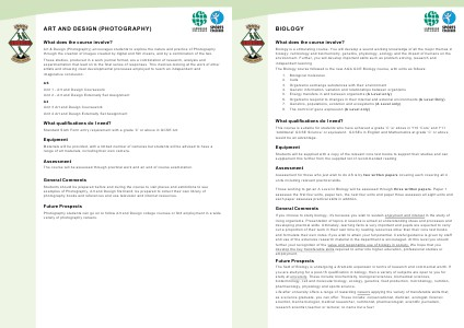 examples of Photography, Art and Design first hand; be prepared to collect their own library of