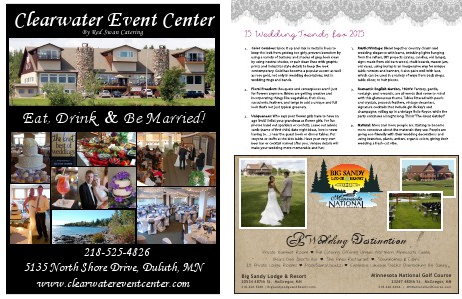 Clearwater Event Center By Red Swan Catering Eat, Drink & Be Married! 218-525-4826 5135 North Shore Drive, Duluth, MN www.clearwatereventcenter.com