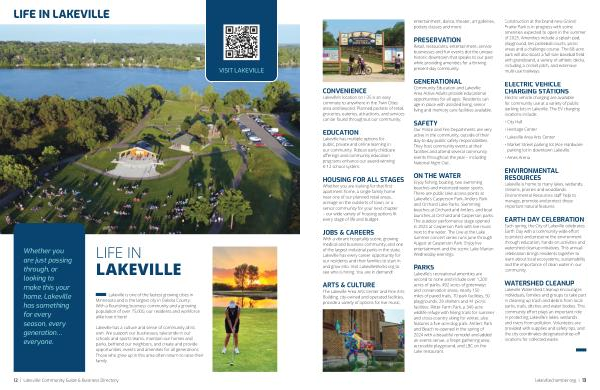Community Education and Lakeville Area Active Adults provide educational opportunities for all ages. Residents can age in place with assisted living, senior living and memory care facilities available.