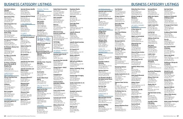 Lakeville Convention and Visitors Bureau( 952) 469-2020 19950 Dodd Blvd, Suite 101 Lakeville, MN 55044 visitlakeville. org See our ad on page 29-32