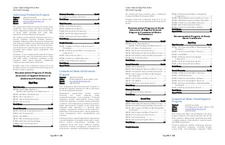 MUSP 12XX Applied Commercial Music Course.... 2 MUSP 1242 Small Commercial Music Ensemble... 2 MUSB 1305 Survey of the Music Business............. 3 MUSP 2103 Commercial Class Piano...................... 1 MUSC 1235 Commercial Music Software............... 2 Total Hours.......................................................... 13 Grand Total:......................................................... 60