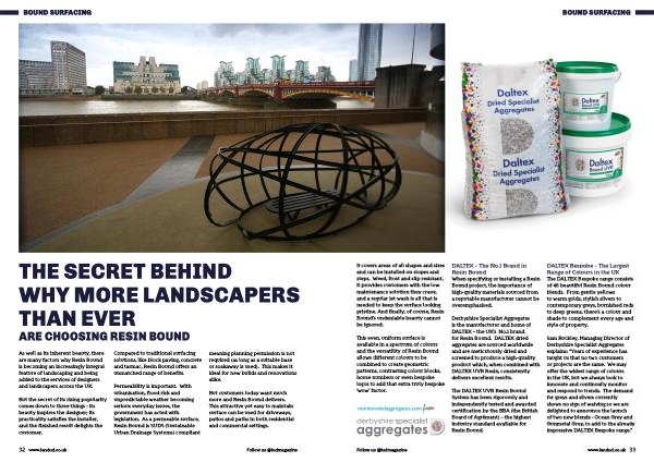 DALTEX – The No . 1 Brand in Resin Bound When specifying or installing a Resin Bound project , the importance of high-quality materials sourced from a reputable manufacturer cannot be overemphasised .