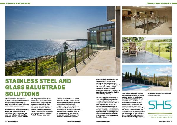 SHS Products are the leader in designing , manufacturing , supplying and installing stainless steel and glass balustrade solutions for homes and businesses across the UK .