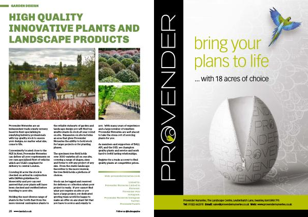 Provender Nurseries , The Landscape Centre , Leydenhatch Lane , Swanley , Kent BR8 7PS Tel : 01322 662315 Email : sales @ provendernurseries . co . uk Web : www . provendernurseries . co . uk