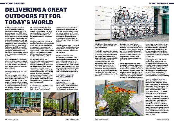 Design which encourages more sustainable behaviour should also be key . A prime example is cycling , in which there has been a growth in the popularity since the start of the pandemic . Public spaces in towns and cities of the future , therefore , as well as any local high street , public building or large workplace , should feature appropriate cycle racks and shelters . After all , anyone making the switch to a cycle commute or weekly visit to the city centre will be encouraged to continue doing so if they can be confident there is somewhere to park their cycle safely and securely .