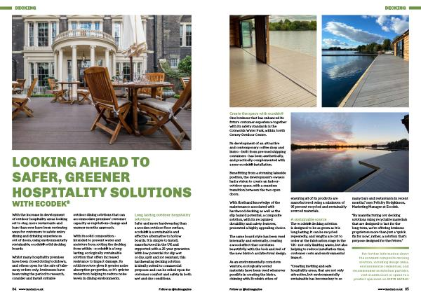 “ Creating inviting and safe hospitality areas , that are not only attractive , but environmentally sustainable has become key to so many bars and restaurants in recent months ,” says Felicity Hodgkinson , Marketing Manager at Ecodek .