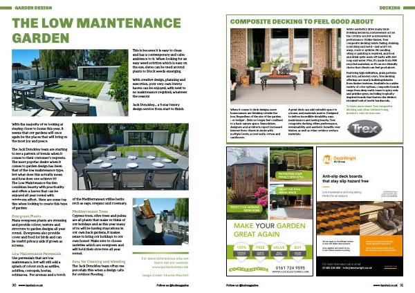 The Jack Dunckley team are starting to see a pattern of trends when it comes to their customer ’ s requests . The most popular desire when it comes to garden design has been that of the low maintenance type , but what does this actually mean and how does one achieve it ? The Low Maintenance Garden combines beauty with practicality and offers a haven that can be enjoyed all year round with minimum effort . Here are some top tips when looking to create this type of garden :