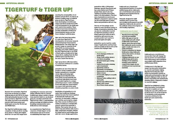 ensuring the sustainability of our industry and products . As well as an industry leading range of artificial grass products , TigerTurf have been developing a revolutionary range of products made from 100 % recycled materials for the landscape and construction markets . These products have been developed to provide sustainable solutions for several industry issues , not just those relating to artificial grass .