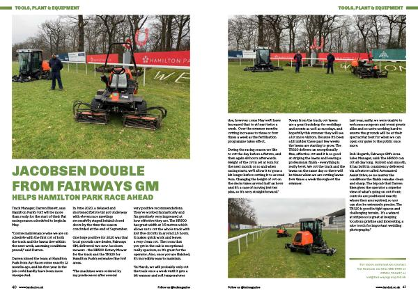 “ Away from the track , our lawns are a great backdrop for weddings and events as well as racedays , and hopefully this summer they will see a lot more visitors . Because it ’ s been a bit milder these past few weeks the lawns are starting to grow . The TR320 delivers an exceptionally fine , effective cut and it is so good at striping the lawns and leaving a professional finish - everything is really level . We cut the track and the lawns on the same day so there will be times when we are cutting lawns four times a week throughout the summer .