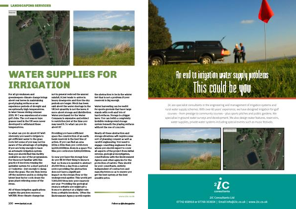 Nearly all these abstraction and storage situations will require some sort of planning consent as well as careful engineering . You need to engage consulting engineers from whom you should expect to cover all aspects of the project from initial surveys , geological investigation , consultations with the Environment Agency and other agencies for the protection of nature . They should be your consultants , entirely independent of contractors and manufacturers so as to ensure you get the best system at the best possible price . www . 2ic . co . uk
