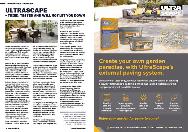 UltraScape have been successfully providing the industry with high quality paving installation materials for over 20 years . Their specialist materials are proven to work alongside all stone manufacturers with excellent results every single time .