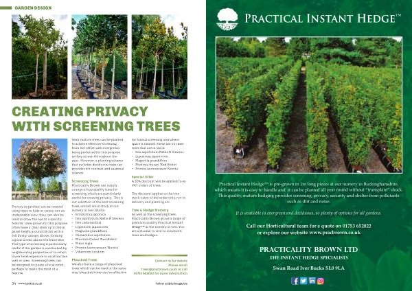 Tree & Hedge Nursery As well as the screening trees , Practicality Brown grows a range of premium quality Practical Instant Hedge™ at the nursery in Iver . You are welcome to visit to view both trees and hedges .