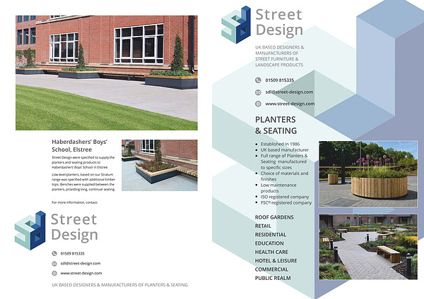 Established in 1986 UK based manufacturer Full range of Planters & Seating manufactured to specific sizes Choice of materials and finishes Low maintenance products ISO registered company FSC®