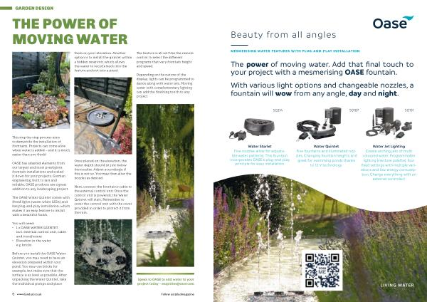 The power of moving water . Add that final touch to your project with a mesmerising OASE fountain .