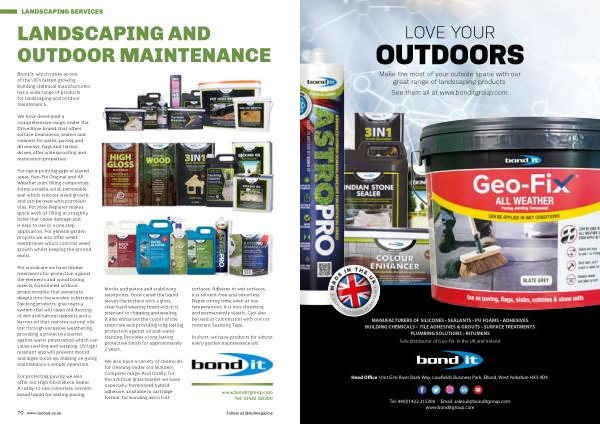 MANUFACTURERS OF SILICONES • SEALANTS • PU FOAMS • ADHESIVES BUILDING CHEMICALS • TILE ADHESIVES & GROUTS • SURFACE TREATMENTS PLUMBING SOLUTIONS • BITUMENS Sole distributor of Geo-Fix ® in the UK and Ireland