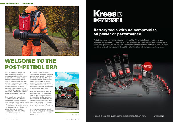 Fast-charging and long-lasting , choose the Kress 60V Commercial Range of outdoor power equipment for new levels of power for all types of landscaping professionals . An impressive line of commercial gardening equipment , with a performance battery platform that stands strong in harsh conditions and delivers unparalleled reliability - all without the high costs and hassles of petrol .