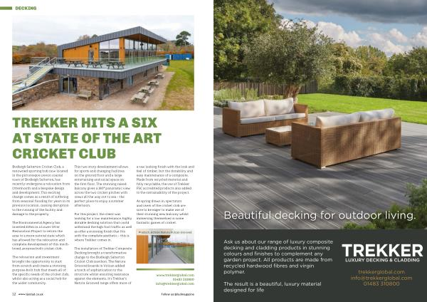 The installation of Trekker Composite Decking brought a transformative change to the Budleigh Salterton Cricket Club pavilion . The Natura Grooved boards in Vulcan added a touch of sophistication to the structure whilst ensuring resistance against the elements . It ’ s Trekker ’ s Natura Grooved range offers more of a raw looking finish with the look and feel of timber , but the durability and easy maintenance of a composite . Made from recycled material and fully recyclable , the use of Trekker FSC accredited products also added to the sustainability of the project .