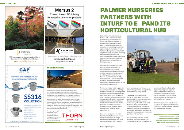 Palmer Nurseries , a horticultural hub in Leeds which is home to a plant nursery , garden centre and landscape operation , is proud to announce its collaboration with Inturf , a national turf production specialist , to introduce premium turf options to customers across West Yorkshire . This partnership highlights a significant step forward in providing environmentally friendly turf solutions designed to meet the diverse needs of commercial landscapers , DIYers , homeowners , and sports facility managers .