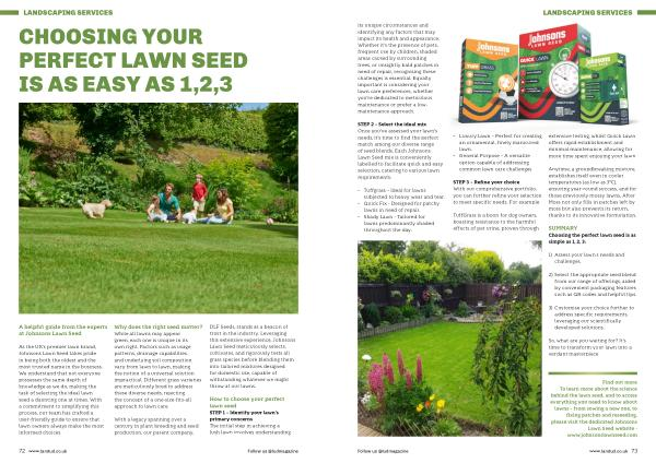 STEP 2 – Select the ideal mix Once you ’ ve assessed your lawn ’ s needs , it ’ s time to find the perfect match among our diverse range of seed blends . Each Johnsons Lawn Seed mix is conveniently labelled to facilitate quick and easy selection , catering to various lawn requirements :
