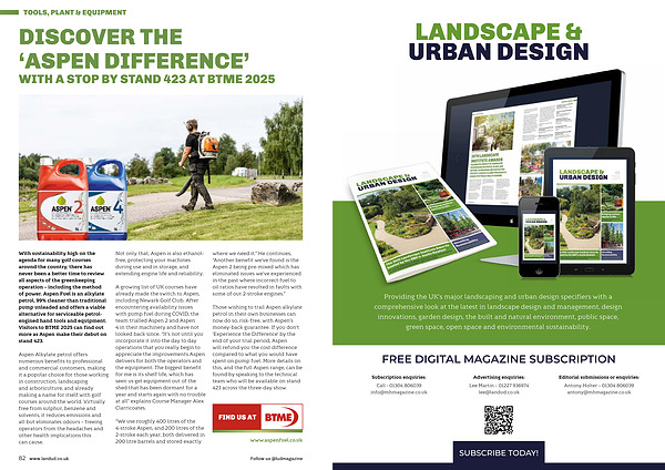 With sustainability high on the agenda for many golf courses around the country , there has never been a better time to review all aspects of the greenkeeping operation – including the method of power . Aspen Fuel is an alkylate petrol , 99 % cleaner than traditional pump unleaded and offers a viable alternative for serviceable petrolengined hand tools and equipment . Visitors to BTME 2025 can find out more as Aspen make their debut on stand 423 .