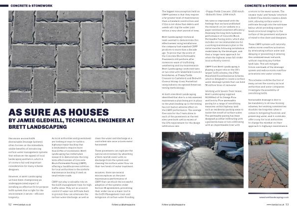 a return to the sewer system. The unique‘ male’ and‘ female’ interlock to Brett Flow blocks creates a 6mm joint, allowing surface water to infiltrate through into the sub-base below whilst providing superior levels structural integrity to the surface of the pavement and peace of mind to the client and designers.