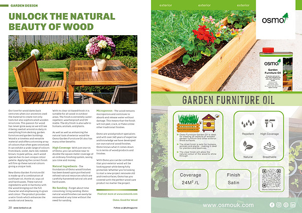 As well as well as enhancing the natural look of exterior wood the Osmo Garden Furniture Oil also has many other benefits: