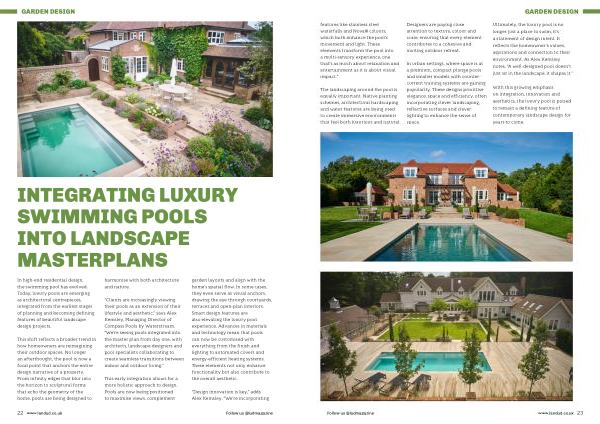 Ultimately, the luxury pool is no longer just a place to swim, it’ s a statement of design intent. It reflects the homeowner’ s values, aspirations and connection to their environment. As Alex Kemsley notes,“ A well-designed pool doesn’ t just sit in the landscape, it shapes it.”