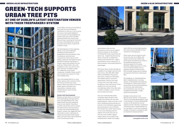 Green-tech involvement Maylim are specialists in hard and soft landscaping, paving projects, and civil engineering work, and Wilton Park was their inaugural venture into Dublin. They have worked with Green-tech for nearly ten years across various projects, so when the TreeParker ® tree pit support system was suggested, they were keen to see it, especially as it had recently been used to good effect just down the road at Athlone a few months previously.