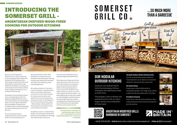 Down in the rolling South Somerset hills, a quiet revolution in fire cooking has been led by The Somerset Grill Company. Here, they design and fabricate their own high quality and versatile woodfired Grills, building in versatility of cooking areas and surfaces, making them a staple centrepiece of any outdoor kitchen set-up.