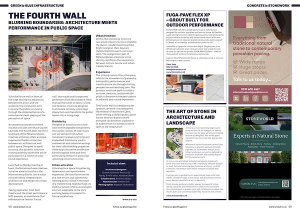 The Fourth Wall is a temporary yet symbolic artwork: it accompanies the renewal of downtown Laval, while offering a vibrant public space for the next 4 to 6 years where everyone can be either a spectator or a performer in a collective scene open to the imagination.
