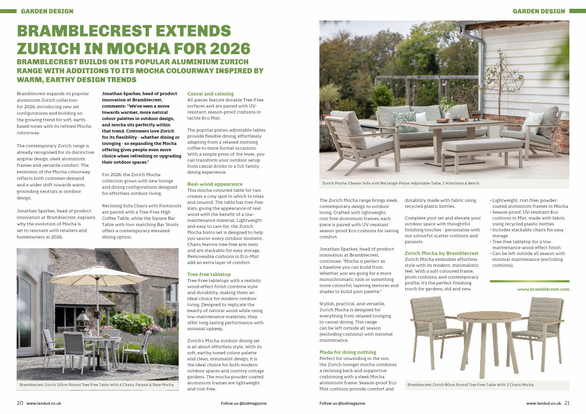 Bramblecrest expands its popular aluminium Zurich collection for 2026, introducing new set configurations and building on the growing trend for soft, earthbased tones with its refined Mocha colourway.