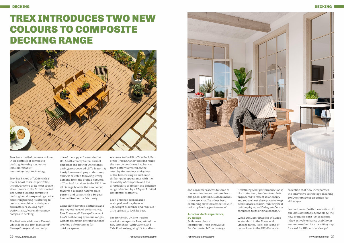 DECKING and consumers access to some of the most in-demand colours from our global portfolio. Both launches showcase what Trex does best, combining elevated aesthetics with industry-leading performance.”