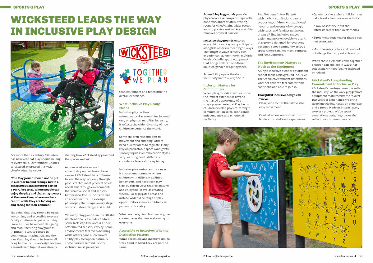 Wicksteed’ s Longstanding Commitment to Inclusive Play Wicksteed’ s heritage is unique within the industry. As the only playground equipment manufacturer with over 100 years of experience, we bring deep knowledge, hands-on expertise, and a proud Made in Britain legacy to every project. We’ ve spent generations designing spaces that reflect real communities and