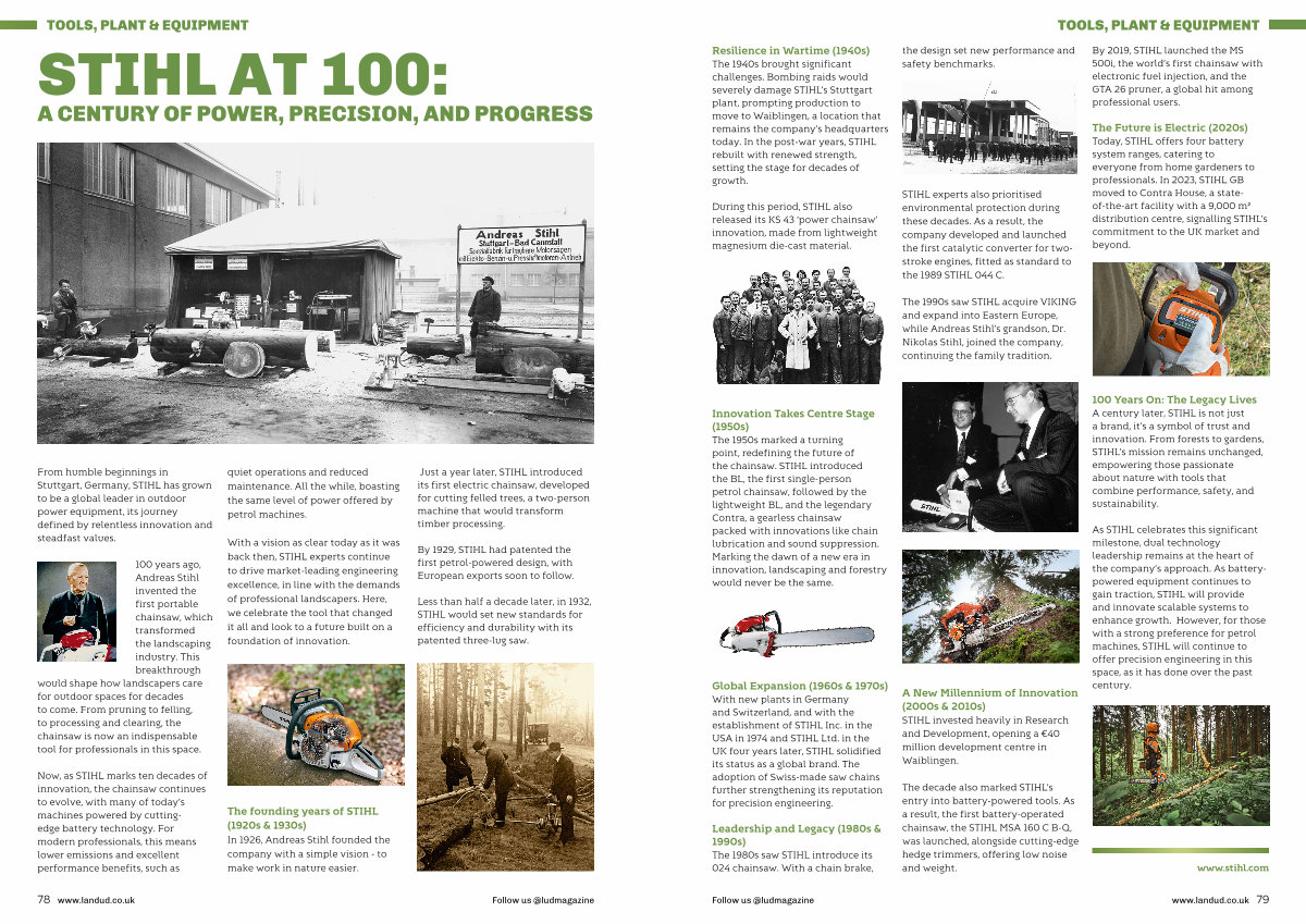 As STIHL celebrates this significant milestone, dual technology leadership remains at the heart of the company’ s approach. As batterypowered equipment continues to gain traction, STIHL will provide and innovate scalable systems to enhance growth. However, for those with a strong preference for petrol machines, STIHL will continue to offer precision engineering in this space, as it has done over the past century. www. stihl. com
