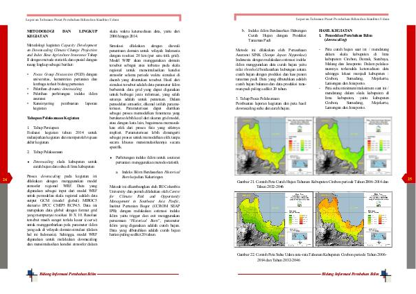 Metodologi kegiatan Capacity Development on Downscaling Climate Change Projection and Index Base Agriculture Insurance Tahap II dengan metode statistik dan spasial dengan ruang lingkup sebagai berikut: