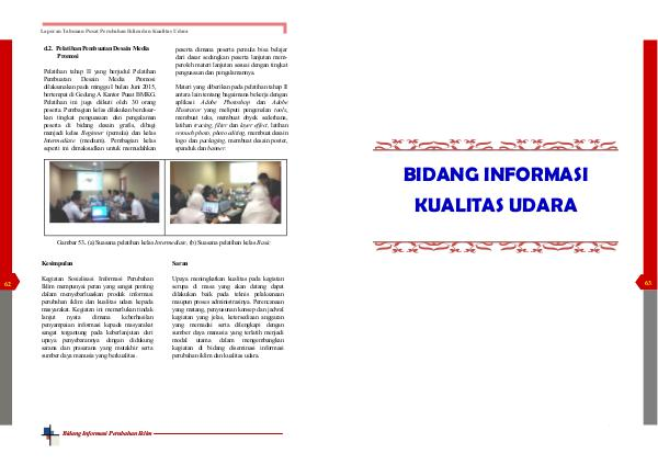 Upaya meningkatkan kualitas pada kegiatan serupa di masa yang akan datang dapat dilakukan baik pada teknis pelaksanaan maupun proses administrasinya. Perencanaan yang matang, penyusunan konsep dan jadwal kegiatan yang jelas, ketersediaan anggaran yang memadai serta dilengkapi dengan sumber daya manusia yang terlatih menjadi modal utama dalam mengembangkan kegiatan di bidang diseminasi informasi perubahan iklim dan kualitas udara.