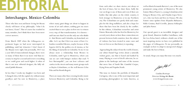 This issue we feature the portfolio of Alejandro Cartagena, who is one of the most important and promising photographers in Latin America, as well as María Fernando Barrero’ s, one of the most prominent young artists of Monterrey. We also feature Mateo Pizarro’ s, a young Colombian artist living in Mexico City, and Claudia López Terroso’ s, who was born and lives in Oaxaca. We also feature some updates from Alejandra Baltazares, Pablo Cotama, Raúl Cerrillo, Jimena Schlaepfer and Julio Pastor.