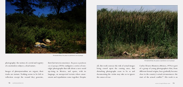 Carlos Álvarez Montero( México, 1974) is part of a group of young photographers that, from different formal origins, have gradually become close to the country’ s actual circumstances: the start of the armed conflict 10. His work is an