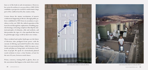 lence or of the body in such circumstances. However, her series Dos millones de casas para México( 2009-2010) establishes a perspective needed to understand a large part of the conflicts faced by the country today.