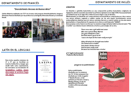 Salida didáctica realizada en mayo de este año con los alumnos de 5°2ª en el marco del proyecto interdisciplinario: Lengua y Literatura-Francés, diseñado por las profesoras Lucía Agulló, Mercedes Resano y Constanza Bauzá.