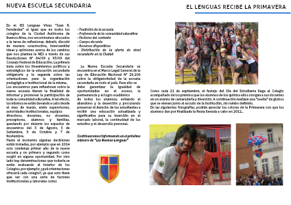 Como cada 21 de septiembre, el festejo del Día del Estudiante llega al Colegio acompañado de los premios que los alumnos de los quintos años otorgan a sus docentes en un evento de camaradería y diversión. A continuación realizan una "suelta" de globos que se elevan junto al escudo de la Institución, sin rumbo definido, llevando un mensaje de los chicos, para aquellos que se encuentren con tan grata sorpresa. Cuentan las buenas lenguas que en una oportunidad, los globos llegaron hasta un colegio de nuestro país vecino, Uruguay, quienes devolvieron el mensaje a nuestro querido Lenguas.