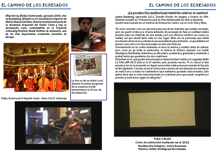 Laura Desmery, egresada 2011. Estudia Diseño de Imagen y Sonido en la UBA. También estudió en la Primera Escuela de Arte Multimedial Da Vinci y Bluebell.