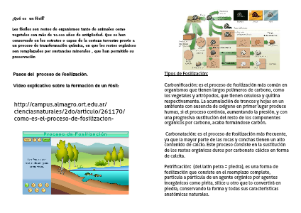 Carbonatación: es el proceso de fosilización más frecuente, ya que la mayor parte de las rocas y conchas tienen un alto contenido de calcio. Este proceso consiste en la sustitución de los restos orgánicos duros por carbonato cálcico en forma de calcita.