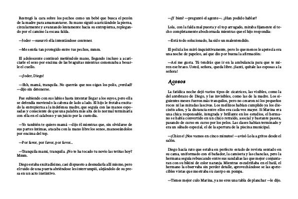 de la madre para amamantarse. Su mano siguió acariciándole la pierna,